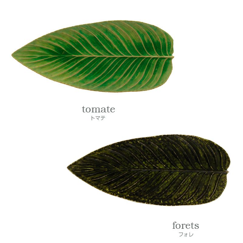 流れるような葉脈のラインがくっきりと入り、個性的な表情のお皿です。