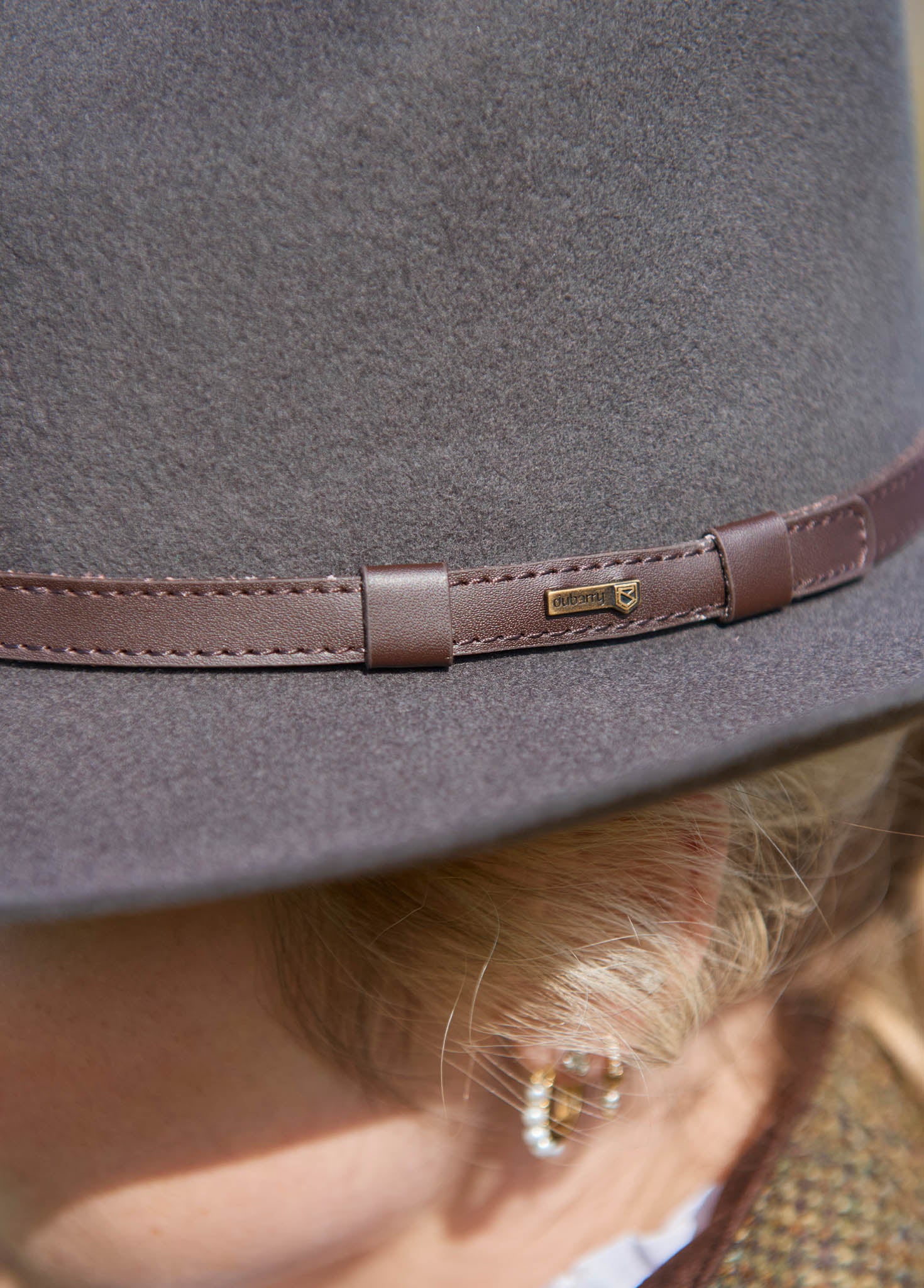 究極のカントリーシックなFlontierは、フェザートリムのフェルト製フェドラです。レース会場にいるときも、撮影に出かけるときも、街でおしゃれをしているときも、この帽子で注目の的になるはずです。BlackthornのツイードジャケットとDownpatrickのブーツで、スマートなスタイルに。